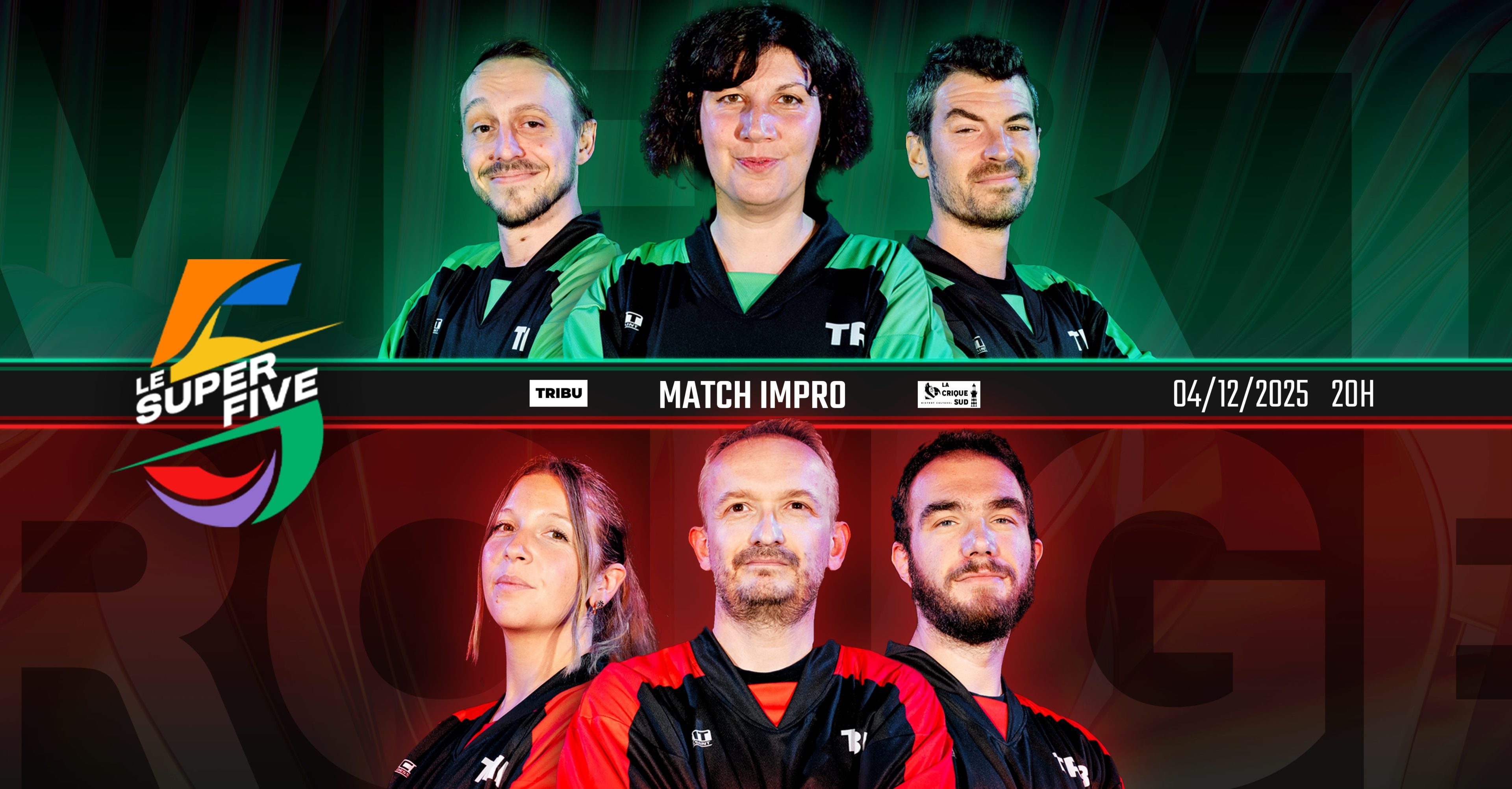 Le Super Five, c’est la plus grande compétition de matchs d’improvisations à Grenoble ! La crème de TRIBU forment des Alliances de trois pour remporter un maximum de matchs ! À chaque spectacle, les comédiens et comédiennes accumulent des points référencés au classement général disponible en ligne. À la fin de la saison, les deux Alliances en tête s’affrontent lors de la finale !