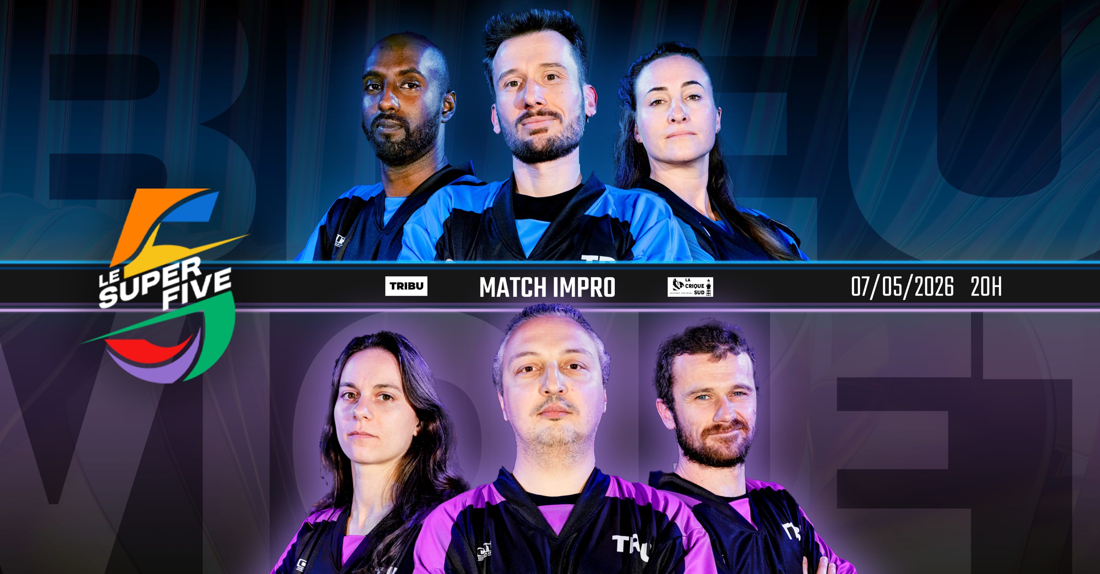 L’Alliance Bleue rencontre l’Alliance Violette dans le dernier match impro la saison pour ces six joueurs et joueuses. C’est donc leur ultime chance de monter en tête du classement général et jouer la grande finale du 18 juin !
