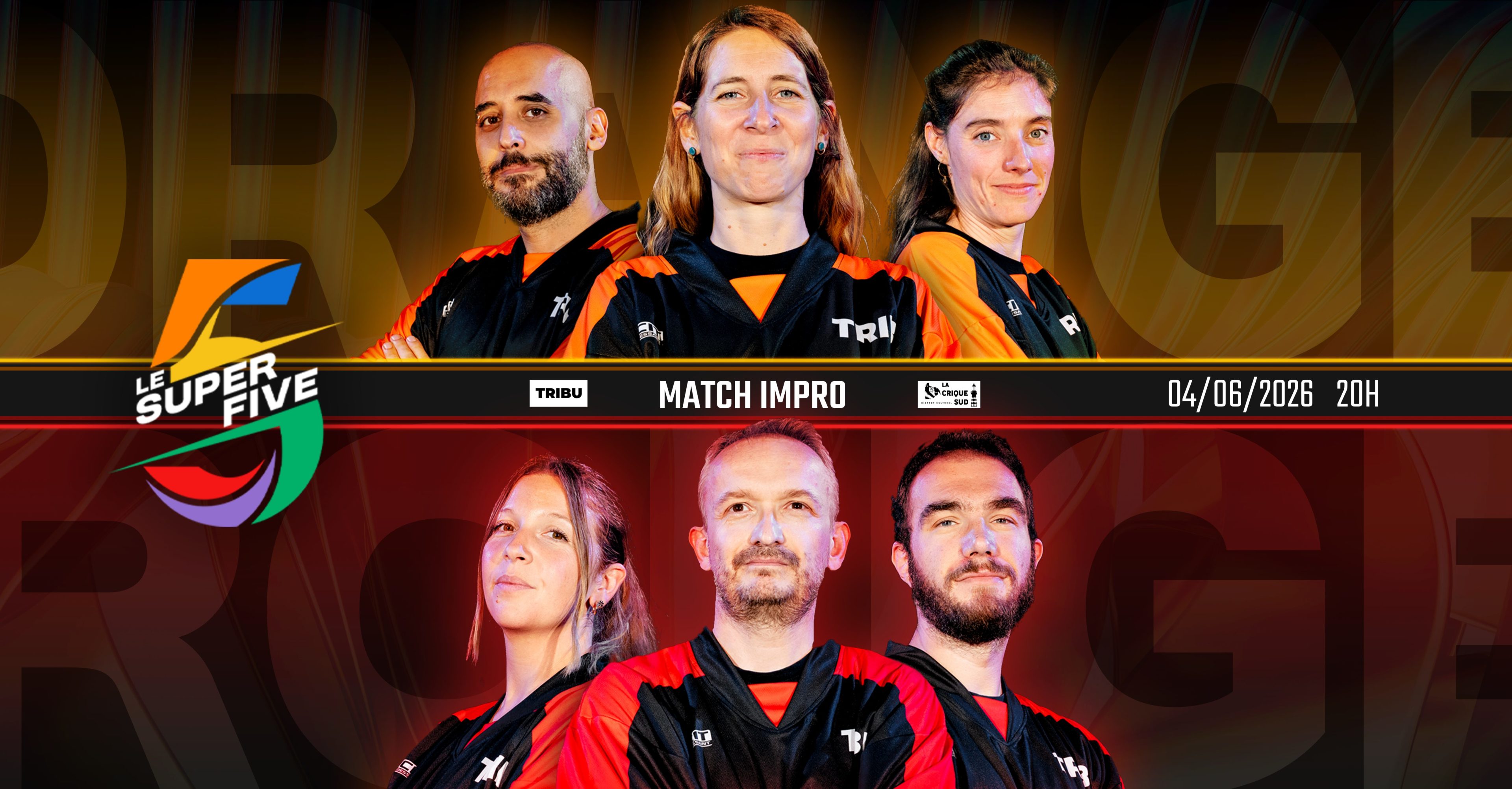 L’Alliance Orange rencontre l’Alliance Rouge dans le dernier match impro de la saison régulière. À la fin de cette soirée, vous connaîtrez les deux Alliances en tête du classement général qui participeront à la grande finale du 18 juin 2026 !
