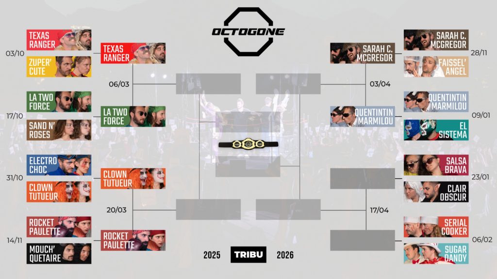 Octogone est un tournoi de Catch Impro produit par TRIBU et mis en scène par Gabriel Derbier et Matthieu Saint-Bonnet.