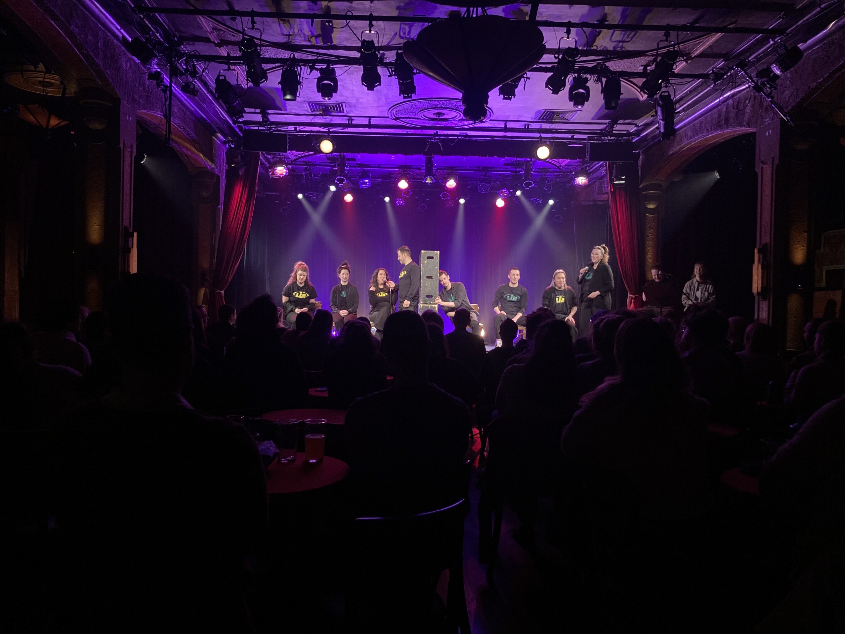 Les improvisateurs et improvisatrices du show proviennent en partie de la LNI, la ligue nationale, assurant du très beau jeu sur scène. Concernant le décorum, il s’agit d’un des rares spectacles sans vote du public. Il n’y a donc pas d’équipe gagnante ou perdante à la fin de la soirée ; seule la qualité théâtrale des improvisations compte ici.